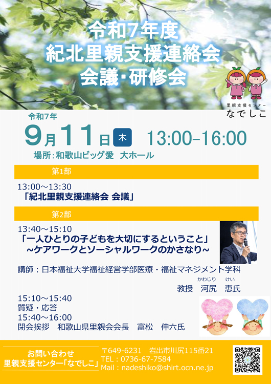 令和7年度 紀北里親支援連絡会会議・研修会 |