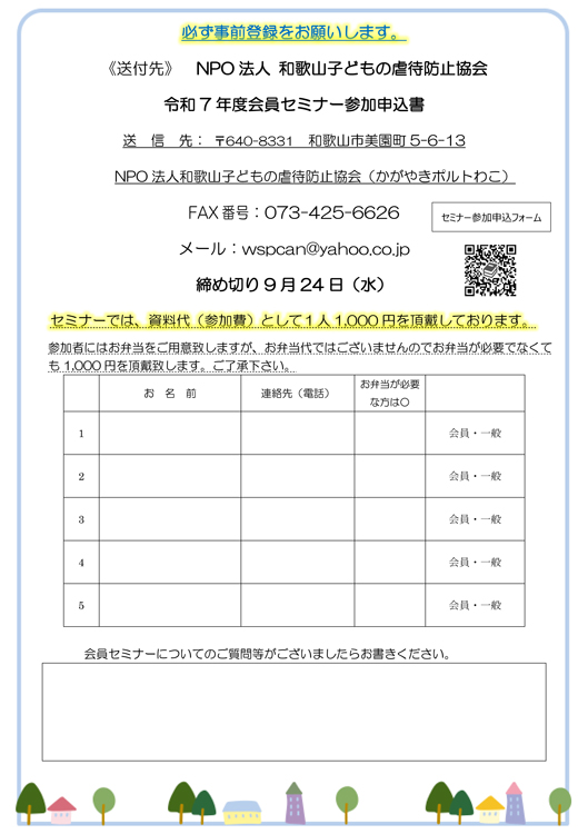 特定非営利活動法人 和歌山子どもの虐待防止協会入会のご案内 |
