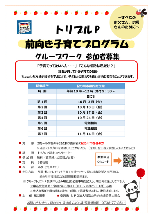 トリプルP 前向き子育てのプログラム(紀の川市) |