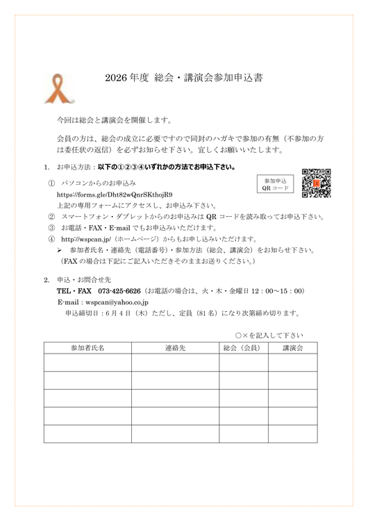 | ○総会公開講演会のお知らせ 日時:6月14日(日) 13時〜運営委員会、 13時30分〜総会、 14時30分〜16時(予定)講演会 場所:県民交流プラザ和歌山ビッグ愛9階 会議室A ○年会費のお知らせ(自動引き落としの手続き済みの方) 自動引き落としを4月20日にさせていただきますので残高確認をお願いします。 |